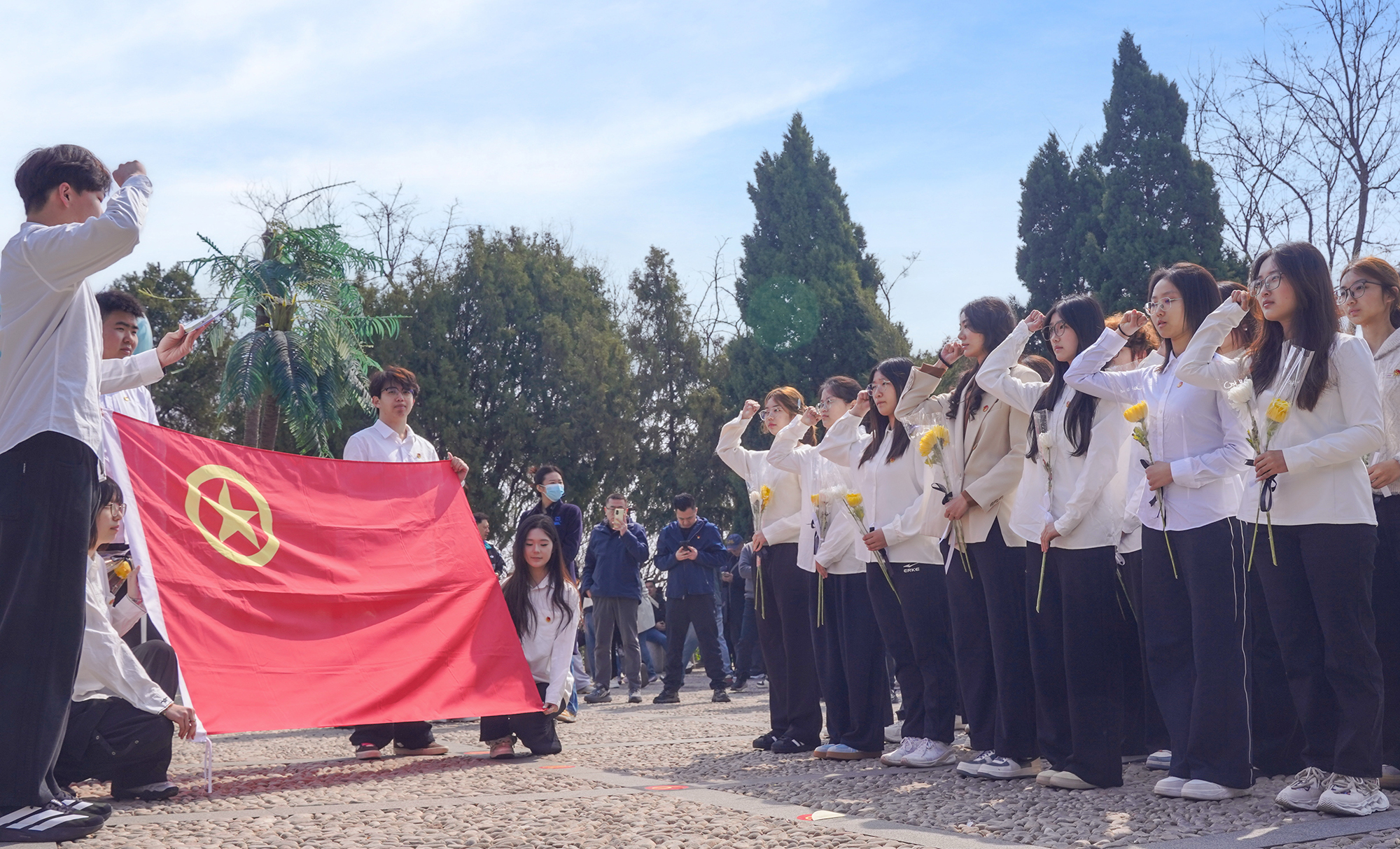 人文学院、商学院、能源动力与电气工程学院等联合双报到社区,以校地联动模式开展主题教育活动。在抗日烈士纪念碑前,他们通过集体默哀、敬献鲜花、重温入党入团誓词、讲述英烈事迹等庄重仪式,缅怀为民族解放和人民幸福英勇献身的革命先烈,在庄严的氛围中感悟革命先辈的爱国赤诚与使命担当,筑牢爱国理想信念。