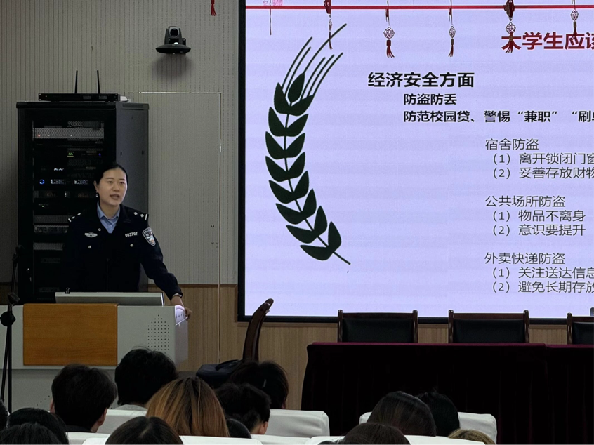 讲座伊始,王警官结合总体国家安全观,简述了全民国家安全教育日的背景与意义。随后,她以“大学生如何做”为突破口,引导同学们跳出“国家安全与己无关”的认知误区,明确大学生作为国家未来建设者,在维护国家安全中肩负的重要使命。整场宣讲围绕政治安全、文化安全、经济安全、网络安全及人身安全等内容展开。王警官结合自身从警经历,选取了一系列贴合大学生校园生活与社会交往的鲜活案例,以通俗易懂的语言和触目惊心的事实,为在场师生拆解安全风险、传授防范技巧。