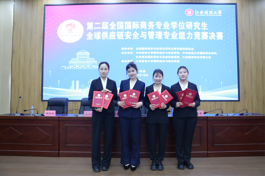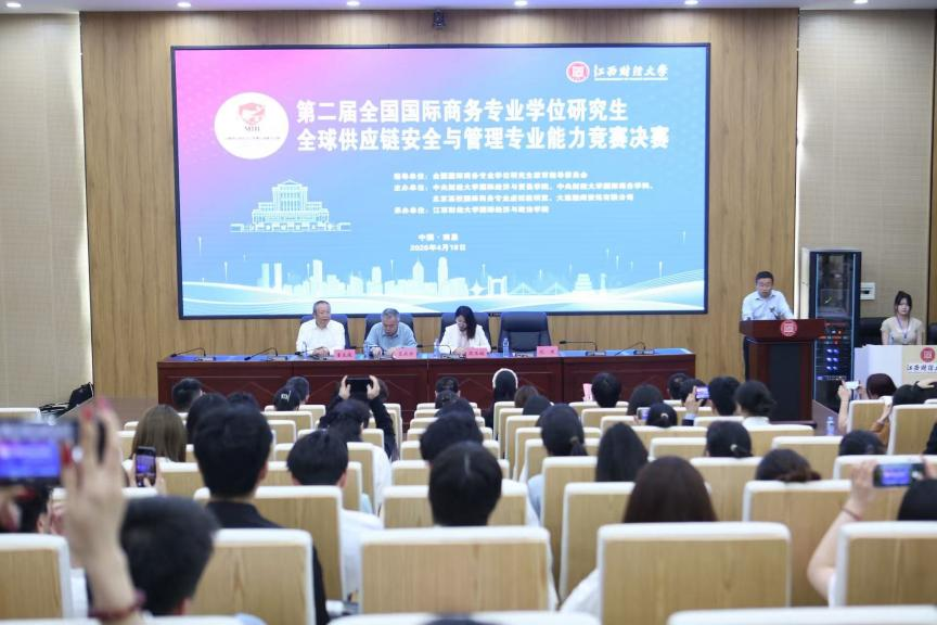 2026年4月18日,由全国国际商务专业学位研究生教育指导委员会指导,中央财经大学国际经济与贸易学院、中央财经大学国际商务学科、北京高校国际商务专业虚拟教研室、大连瀚闻资讯有限公司主办,江西财经大学国际经济与政治学院承办的第二届全国MIB全球供应链安全与管理专业能力竞赛决赛圆满收官。