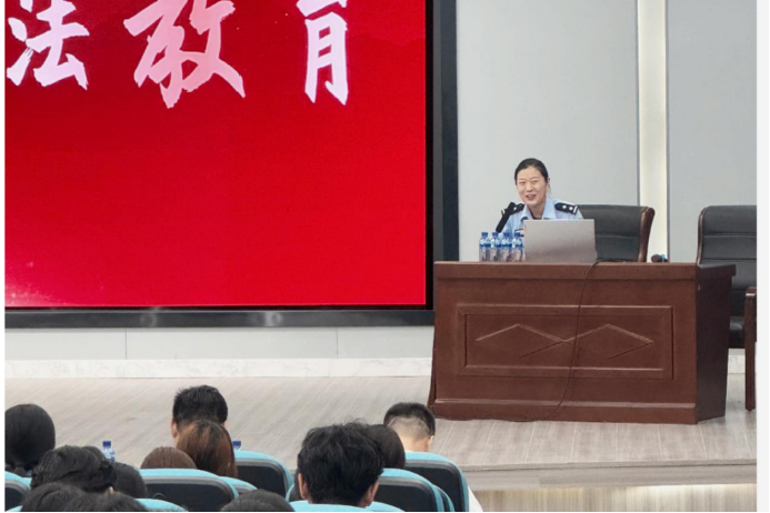 温亚新队长以真实案例为切入点,详细剖析了大学生常见的违法犯罪行为。从因口角引发的故意伤害案件,到针对学生群体的电信诈骗陷阱,再到日常生活中易被忽视的侵犯隐私行为,通过生动的案例描述和深刻的法律解读,让同学们清晰认识到违法犯罪的严重后果。温队长着重强调了法律的权威性和严肃性,提醒新生在公共场所要严格规范自身言行,遵守法律法规,坚决杜绝因一时冲动而触碰法律红线。  王昱颖警官进一步聚焦网络安全和个人信息保护,为新生补充了实用的安全知识。她列举了兼职刷单、冒充客服、冒充公检法人员办案等多种高发网络诈骗手段,特别提醒新生不要随意点击陌生链接、下载不明来源软件,避免手机、电脑被植入病毒,导致个人信息泄露或财产损失。
