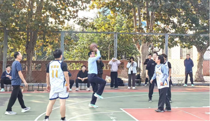 当日下午,阳光和煦,微风拂面,篮球场四周早早聚集了前来观赛的师生,现场气氛热烈。随着裁判一声清脆的哨响,篮球赛正式拉开帷幕。学院教师代表队身着统一队服,精神抖擞地踏上赛场;学生代表队则朝气蓬勃,展现出青年学子的活力与风采。